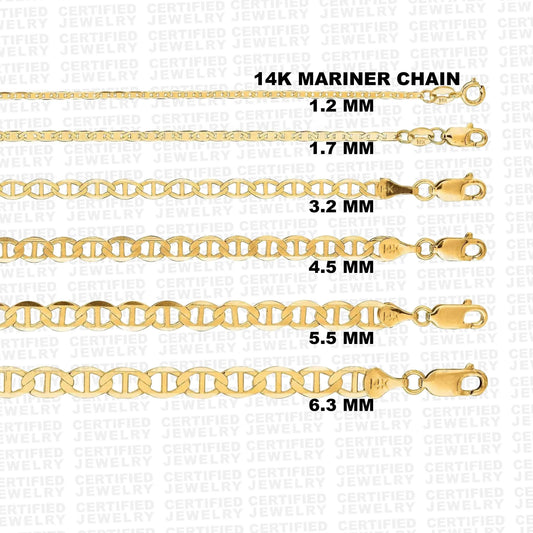 Solid 14K Yellow Gold Mariner Link Chain Necklace, 1.2mm To 6.3mm Wide