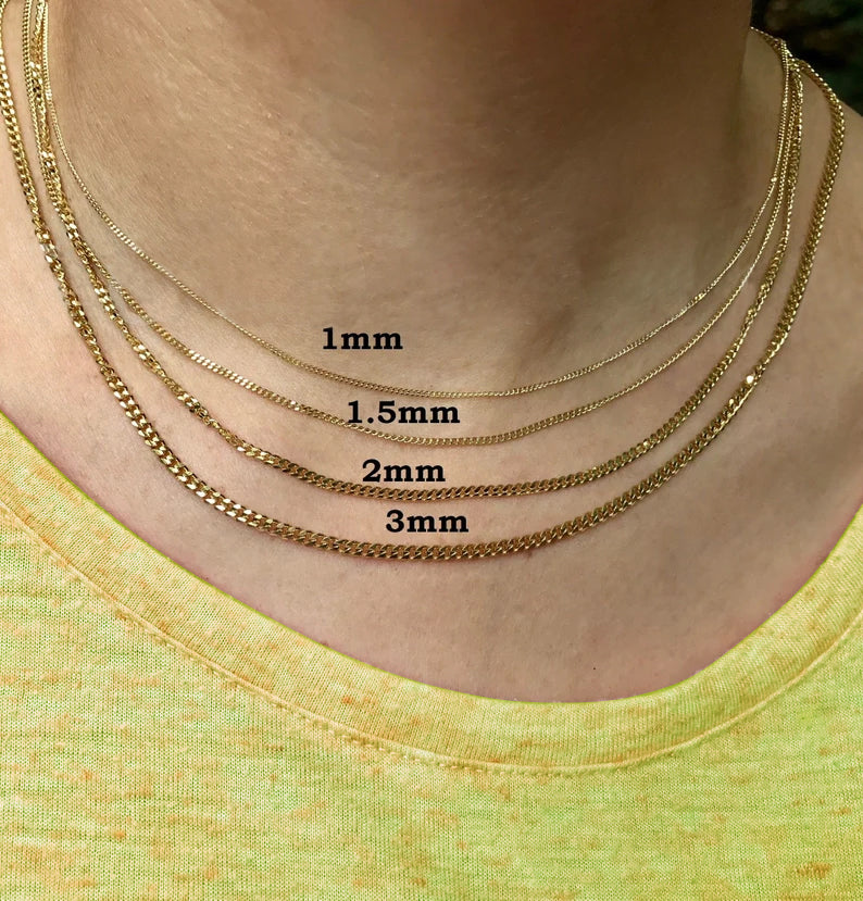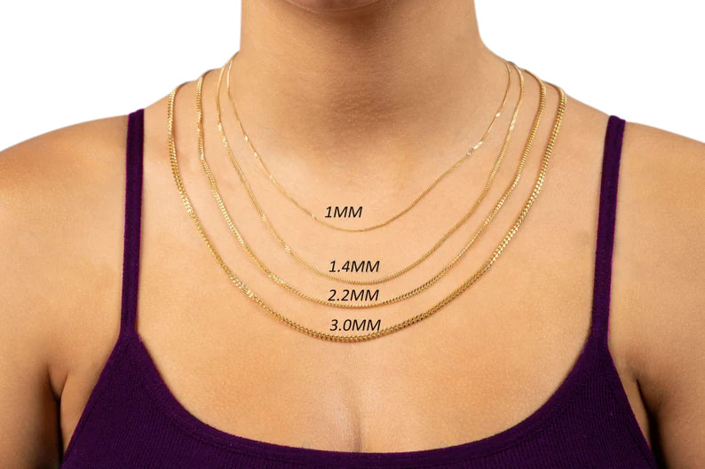 Solid 14K Gold Gourmette Chain Necklace, 1.0mm to 3.0mm Wide