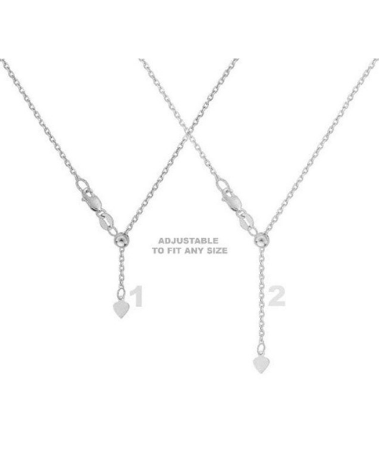 14K Solid White Gold Adjustable Chain Necklace, 0.70mm to 1.5mm Wide.