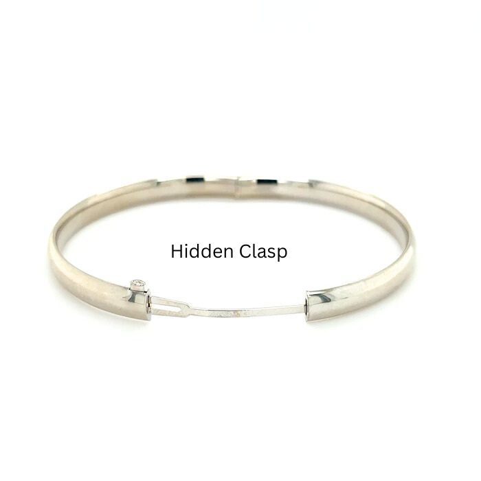 14k White Gold Plain Polished Bangel Bracelet, 5mm Or 6mm Wide
