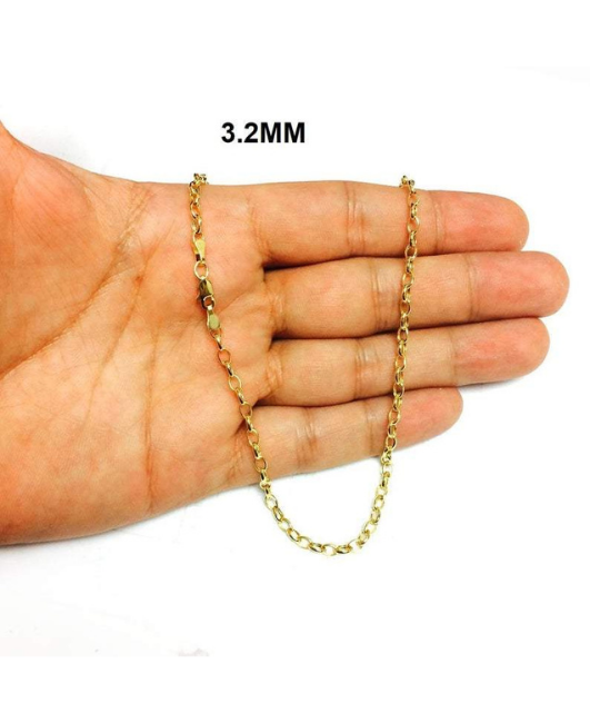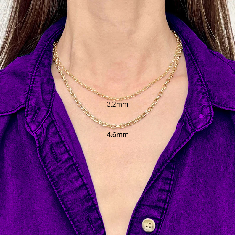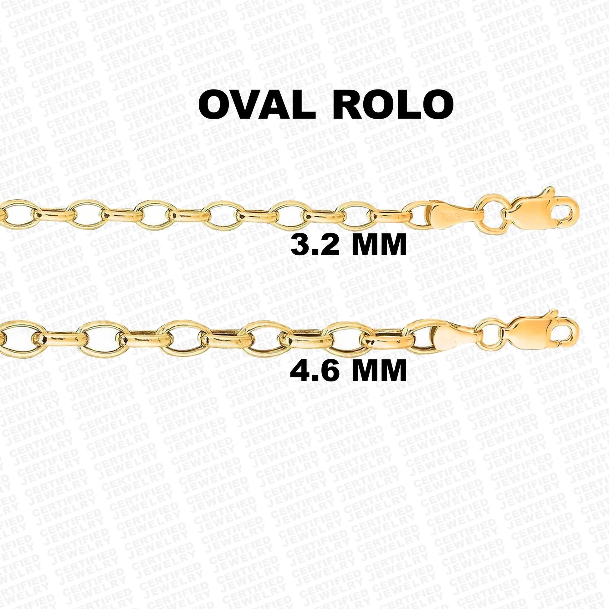 14K Yellow Gold Oval Rolo Chain Necklace, 3.2MM 4.6MM Wide.