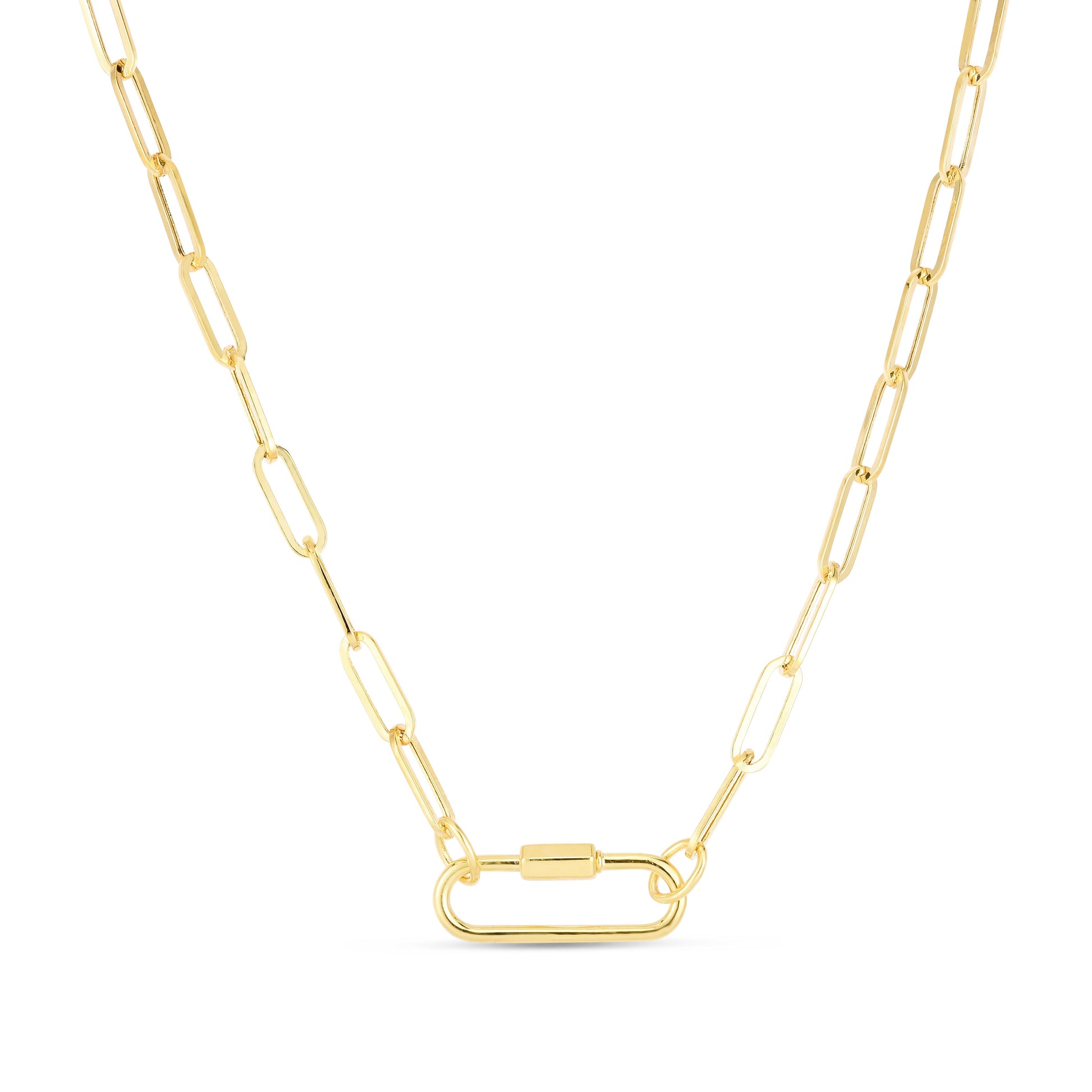 14k Yellow Gold Paperclip Classic Carabiner Necklace, 3.4mm Wide