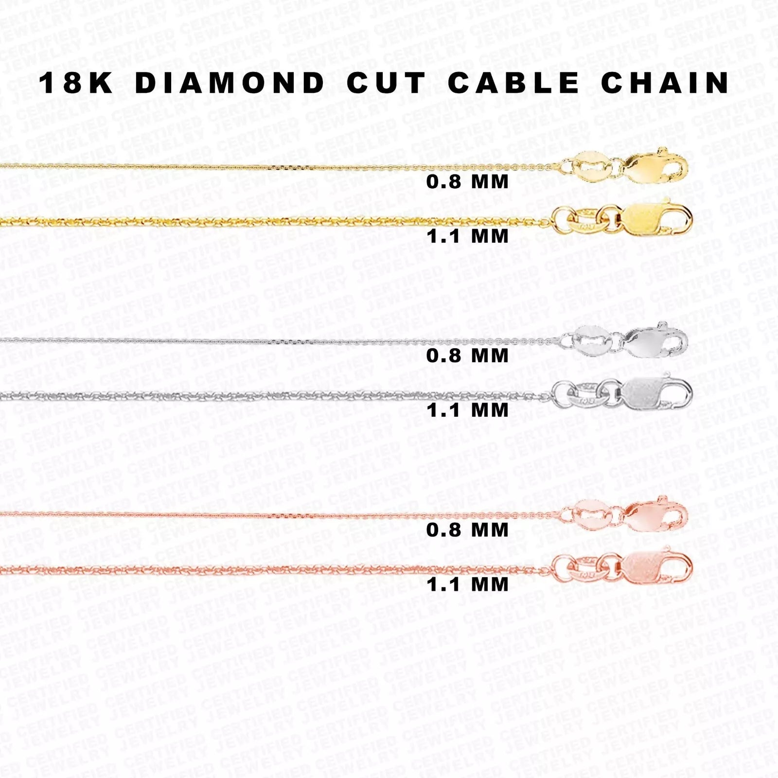 Item Description: 18k Solid Yellow, White Gold, or Rose Gold Diamond Cut Cable Chain