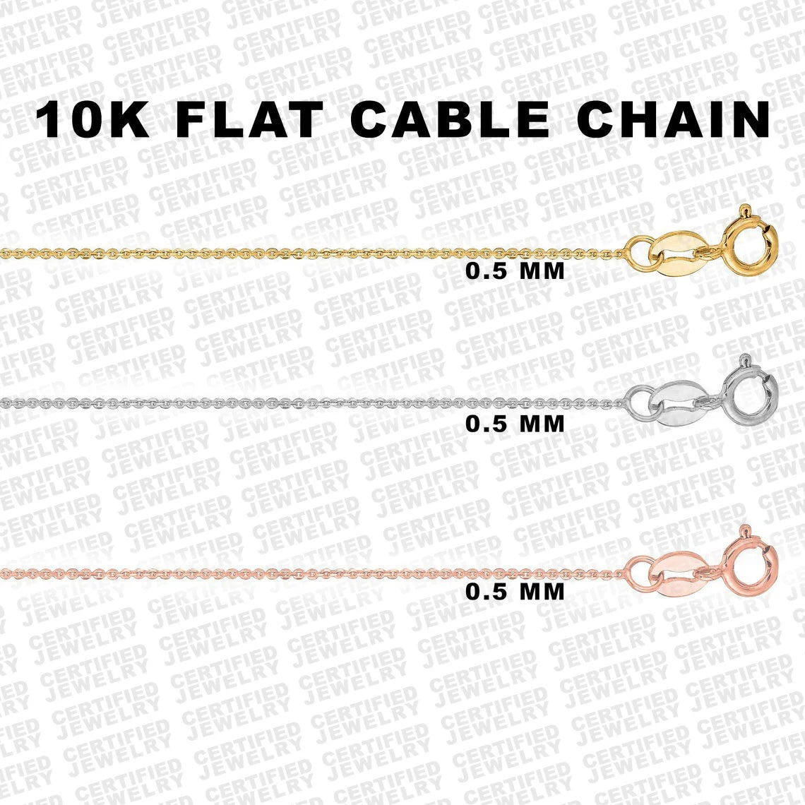Solid 10k Diamond Cut Flat Cable Chain Necklace, 0.5mm Wide