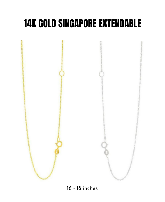 Solid 14K Gold Singapore Chain Necklace, 16" 18" Inch Extendable, 1mm Wide, 14K White Yellow Gold, Dainty Gold Chain, 14K Gold Rope Chain