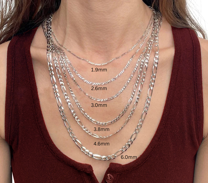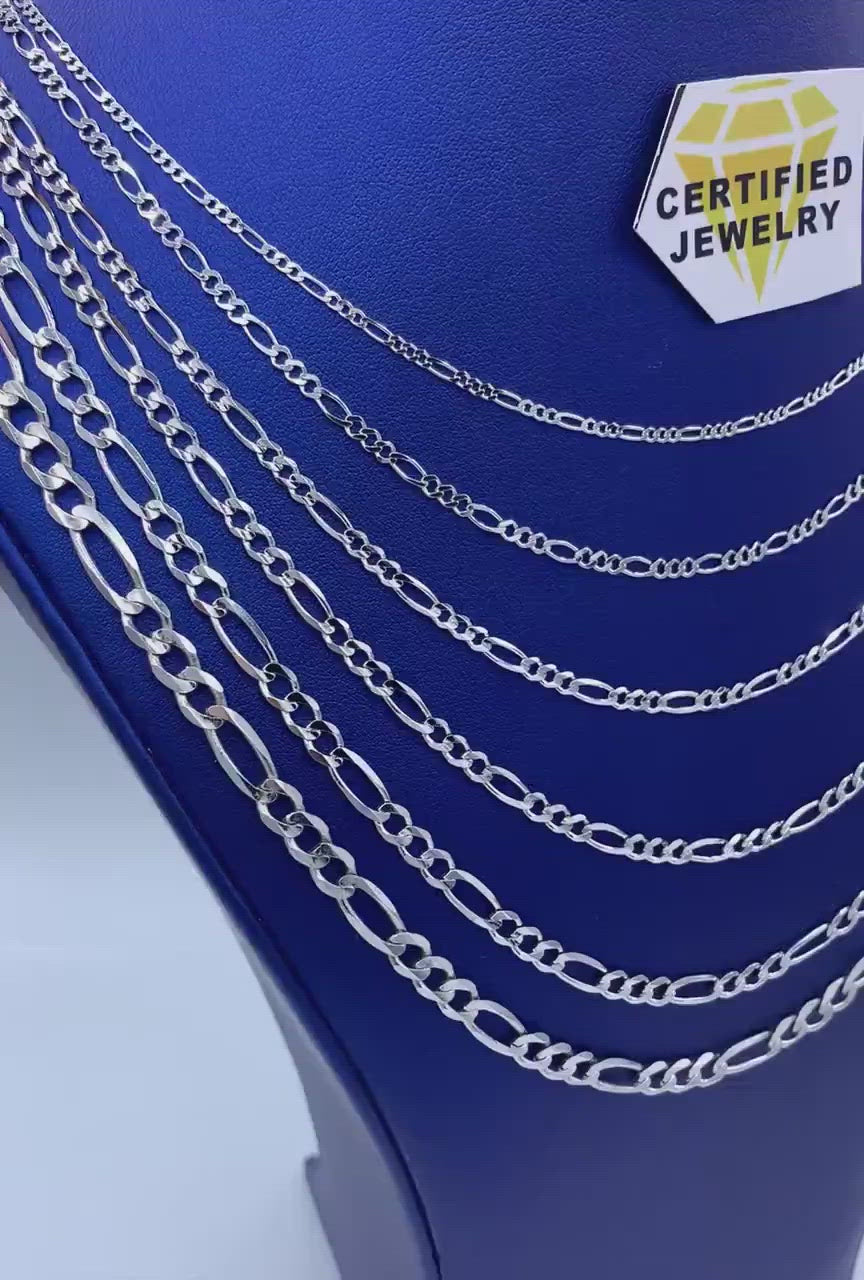 Solid 14K White Gold Figaro Chain Necklace, 1.9mm To 6mm Wide