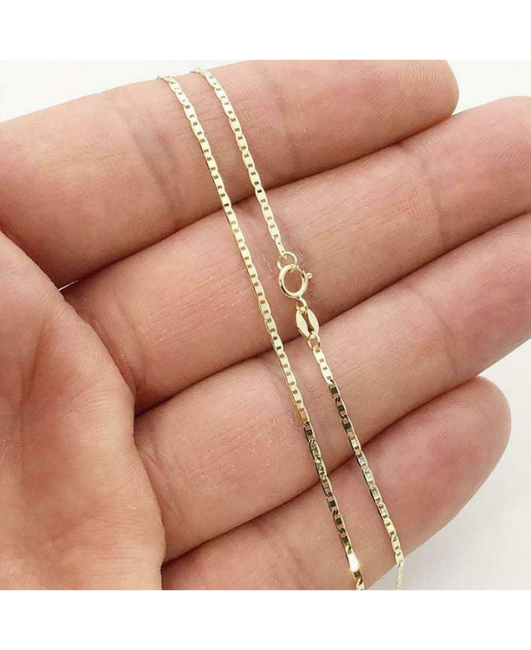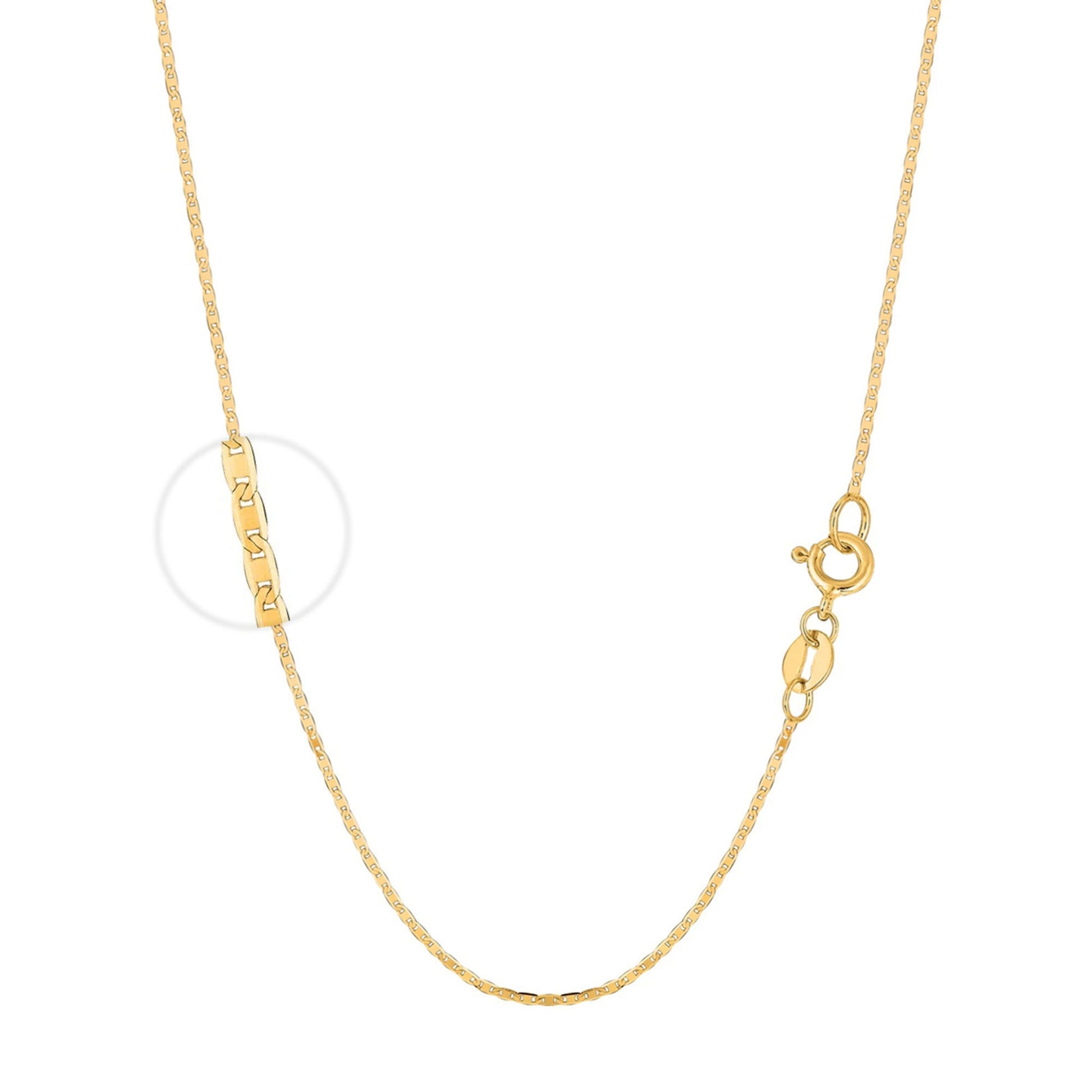 14K Solid Yellow Gold Mariner Link Chain Necklace, 1.2mm Wide.