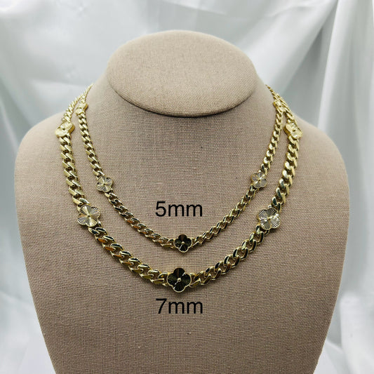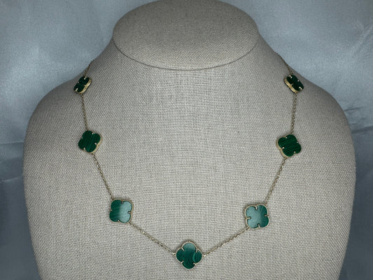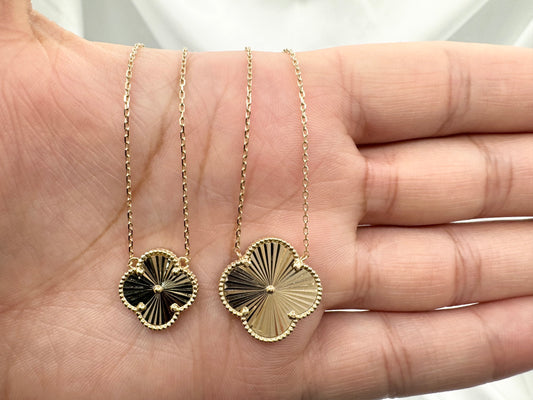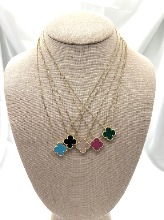 Solid Gold Four Leaf Clover Necklace, Mother Of Pearl, Onyx, Green, Turquoise & Pink