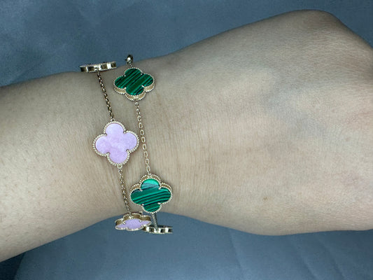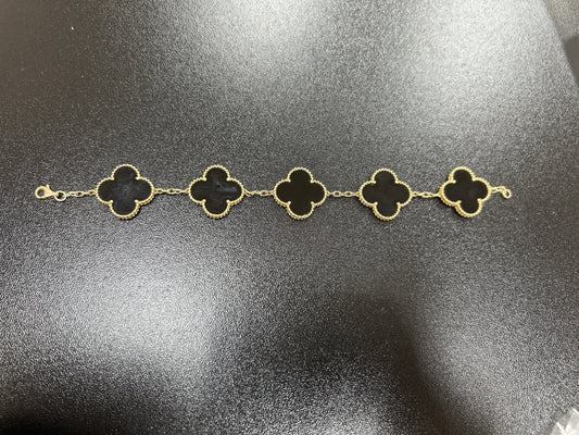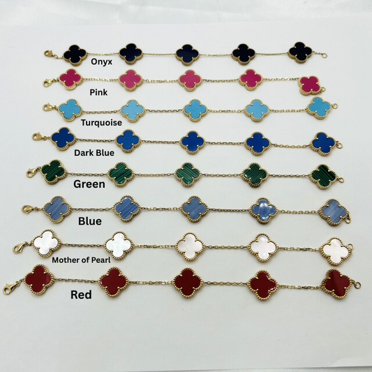 Solid Gold Five Clover Bracelet, Available in multiple colors